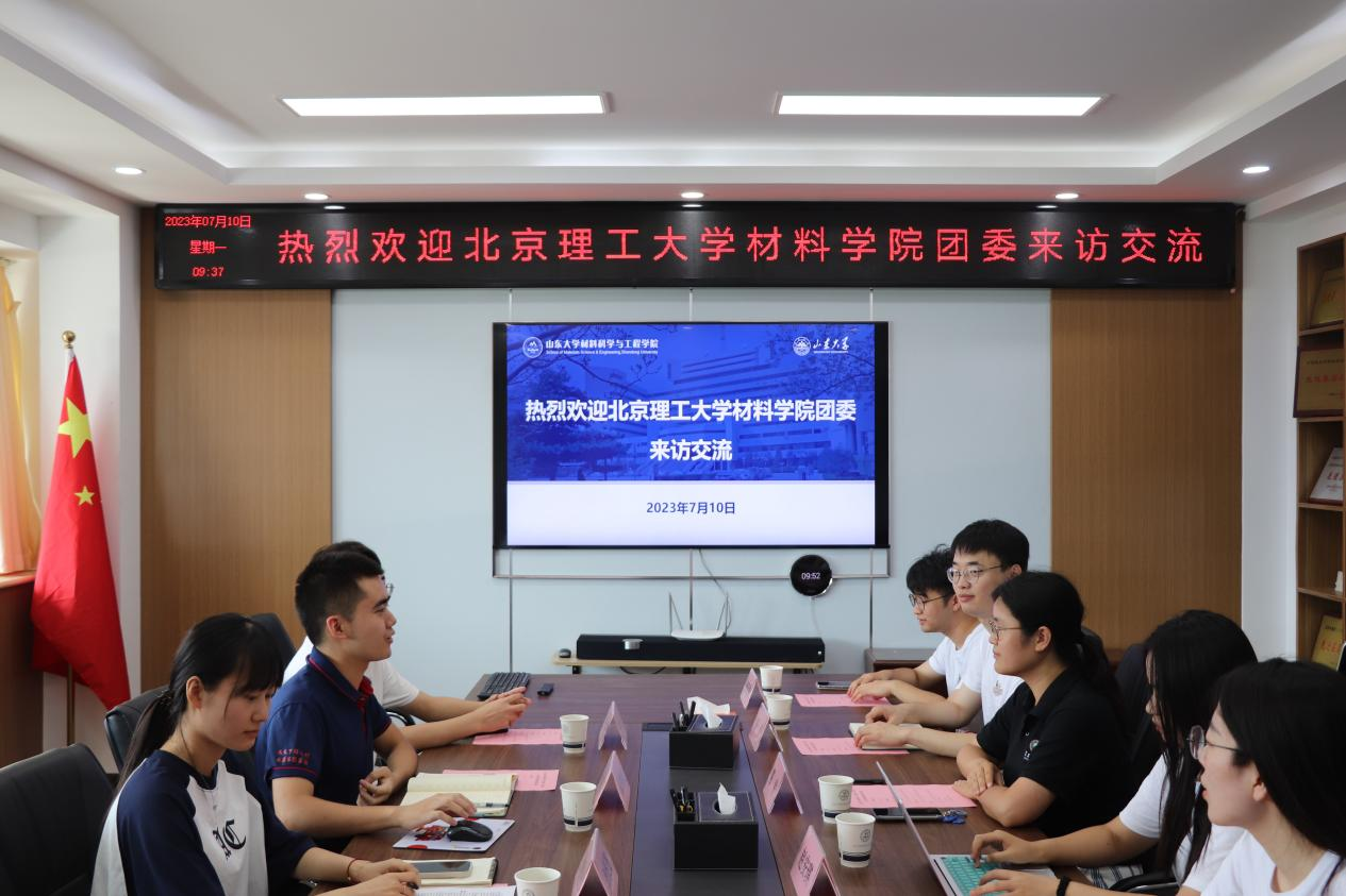 葛幸介绍了北京理工大学材料学院的学科历史及专业特色,结合材料学科特点,分享了思政教育中的一些典型案例和先进经验,就北京理工大学材料学院学生组织建设、学生日常管理、心理健康教育、就业工作等方面进行了简要介绍。吕伟介绍了山东大学材料学院的基本院情院况和团委工作情况,表示材料学院坚持以习近平新时代中国特色社会主义思想为指导,坚持立德树人根本任务,坚定人才培养自信,不断提高人才培养质量。双方认为彼此间具有良好的合作基础,应当发挥各自优势,充分利用校友资源,深入交流、深化合作,建立长期紧密的合作交流机制,助力人才培养工作迈上新台阶。双方就学生组织在主题教育中的作用、青年服务国家主动性的培养、高校党团活动中存在的问题等方面开展了广泛深入的研讨,座谈会后双方共同参观了山东大学科技馆。