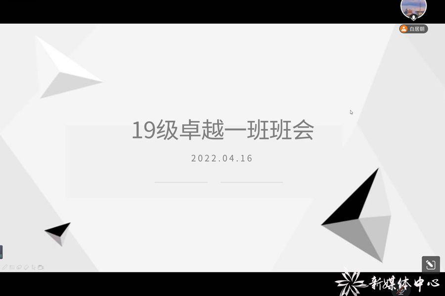 416日上午10时,材料学院2019级卓越一班利用腾讯会议平台成功召开本学期的本学期疫情防控线上班会暨考研就业经验分享会。本次班会由长白居朝主持,卓越一班班主任石磊、辅导员路丽丽以及卓越一班全体同学参加本次班会。