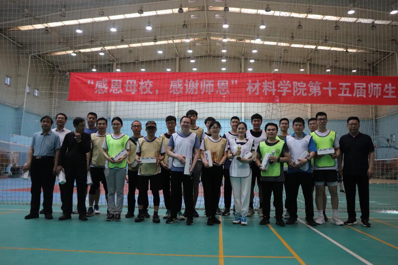 为拓宽研究生与导师交流渠道增强研究生爱校观念与母校情节给广大毕业生营造一个温馨的离校氛围,5月27日,山东大学材料学院在千佛山校区南院波力羽毛球馆举办了第十五届研究生师生气排球大赛。经过一番激烈的角逐,金属所教师队、20级学二队夺得本次比赛冠军,模具所教师队以及20级学一队荣军,铸造所教师队以及19级学一队获得,其他各队伍获得优秀奖。