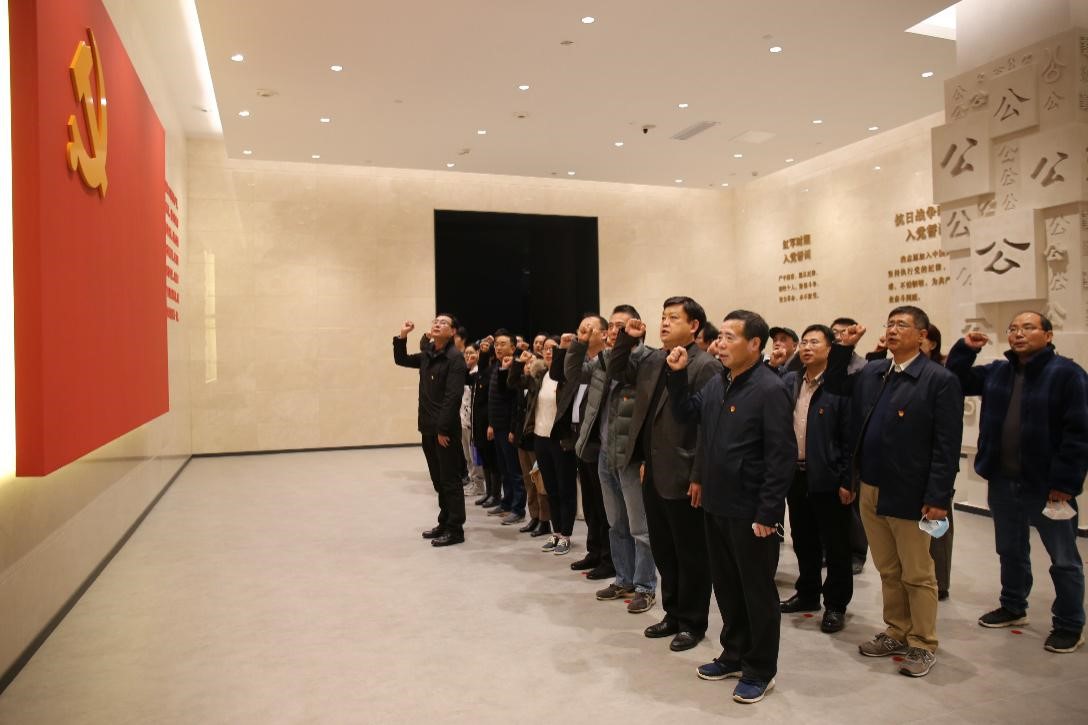 在宣誓厅,全体党员干部面对鲜红的党旗,庄严宣誓,重温入党誓词,感悟共产党员的初心使命,进一步坚定了为共产主义事业奋斗终生的信念。