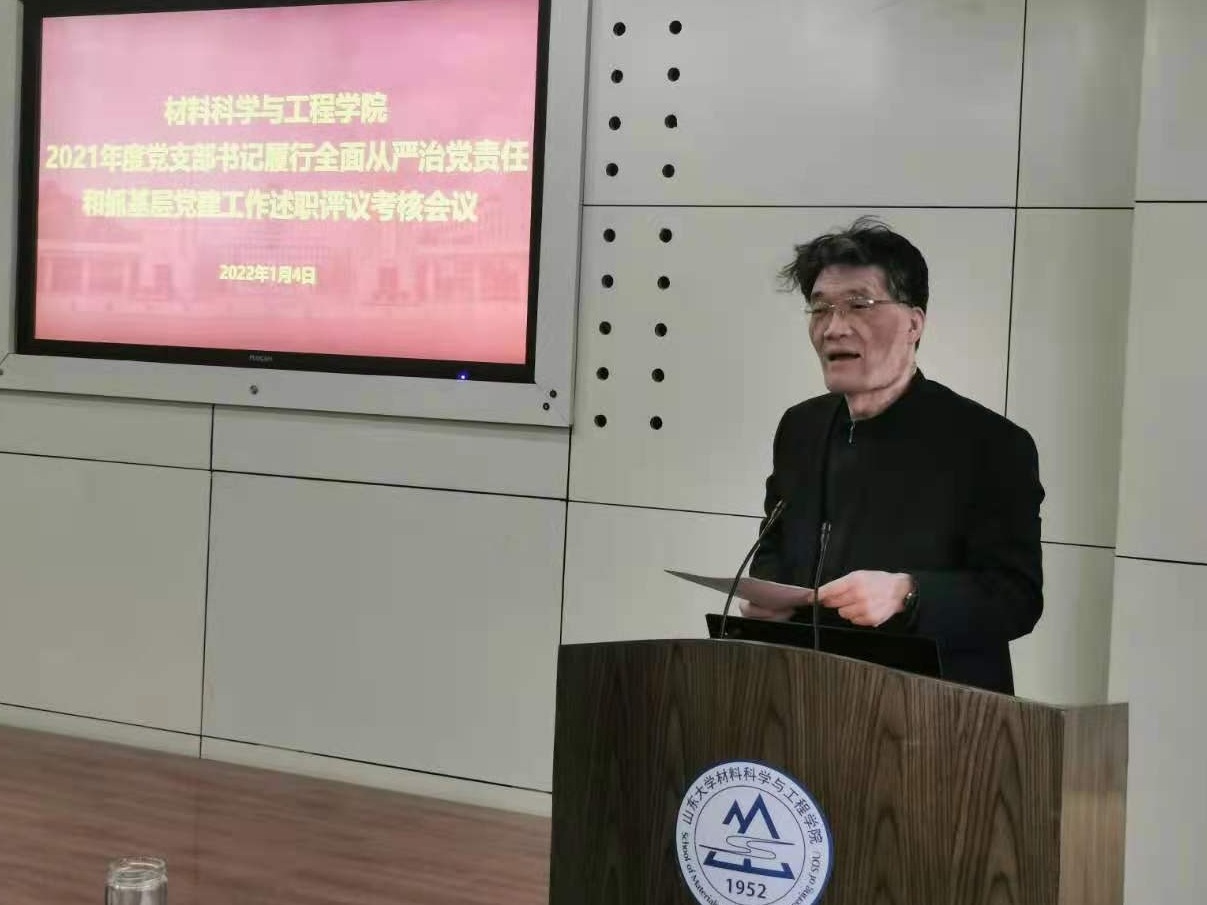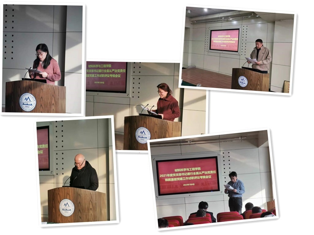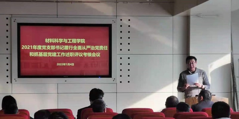 1月4日,材料学院党委召开会议开展2021年度基层党支部书记履行全面从严治党主体责任和抓基层党建述职评议工作,学校党史学习教育第六指导组张佳琦出席会议并作点评,学院领导班子成员、各教工党支部书记及全体支部委员参加会议。