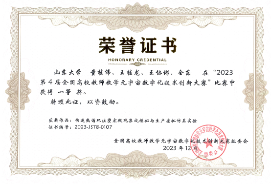 近日,2023年第四届全国高校教师教学元宇宙数字化技术创新大赛全国总决赛举行,材料学院教师董桂伟、王桂龙、王协彬、全东组成的“高光注塑成型仿真团队”参赛项目《快速热循环注塑宏微观集成模拟与生产仿真实验》成功入围总决赛并获得一等奖。