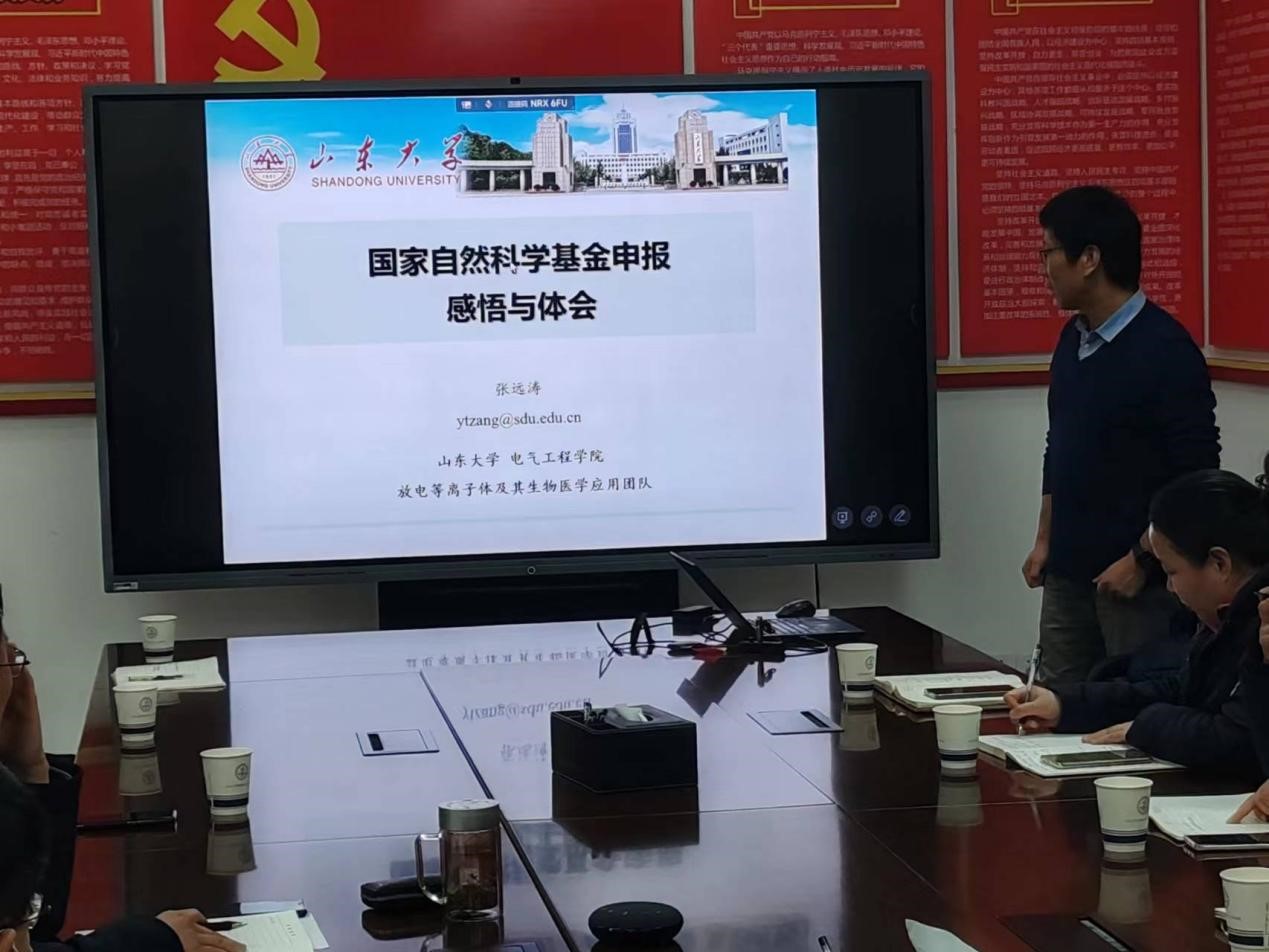 会上,西北工业大学李文亚教授受邀作了题为《基金申请个人体会与思考》的报告,详细介绍了基金申请书的定位布局、撰写技巧、评审要素等多个方面的内容,并就国合基金、联合基金申报同与会人员分享了经验。山东大学电气工程学院张远涛教授受邀作了题为《国家自然科学基金申报感悟与体会》的报告,阐述了申请准备工作与申请书撰写的关键要素,强调了“新”对科学问题研究的重要性。学院尚蒙蒙教授和王凤龙教授结合个人申报经历以及申请书的内容,分享了国家基金面上、青年项目申报经验。