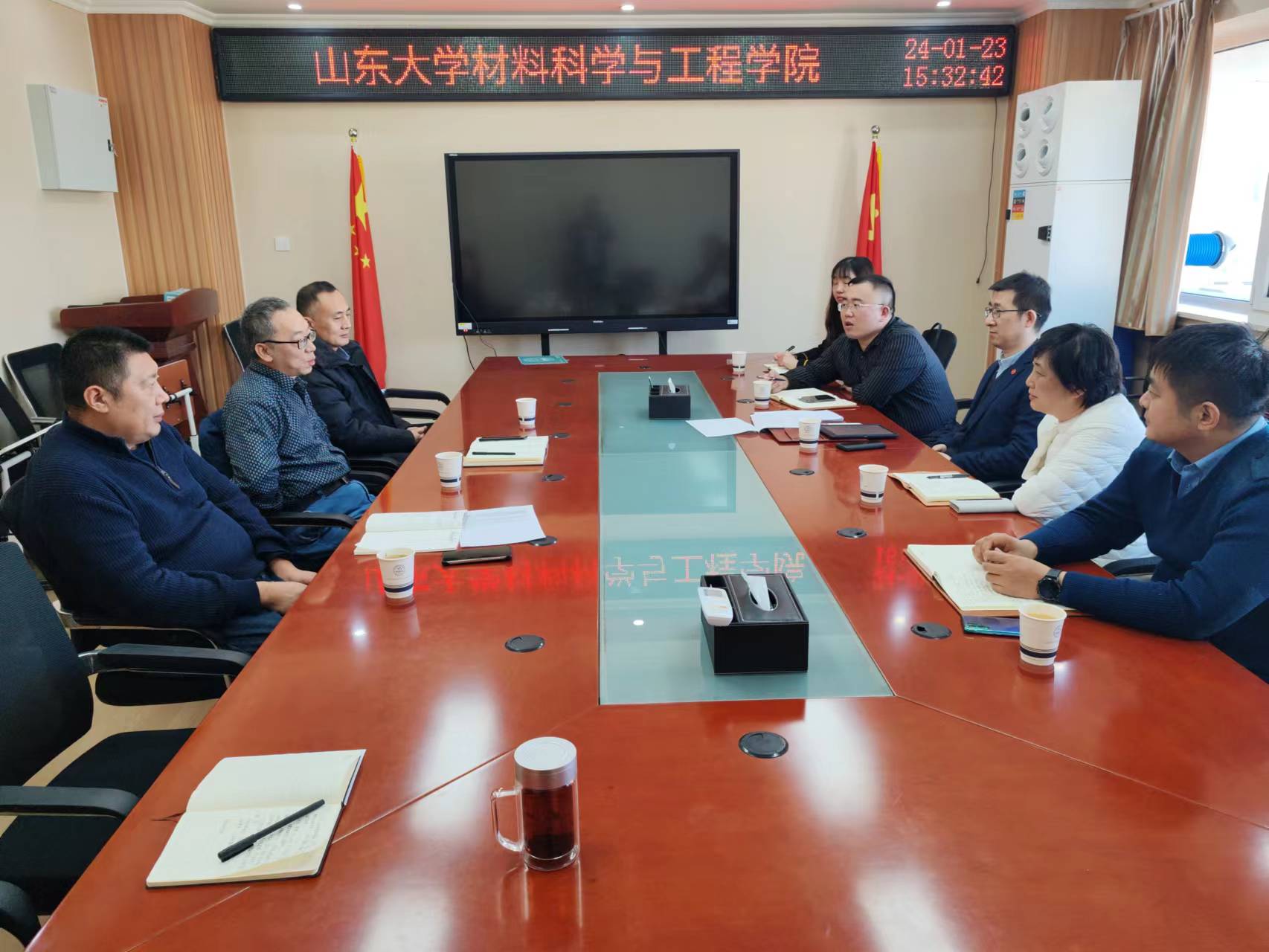1月23日,服务山东办公室副主任、合作发展部副部长蒋红光带队来访材料学院,就基金会筹资与管理、校地校企合作等工作开展调研。材料学院党委副书记张强、副院长毕见强、办公室主任孙跃参加调研座谈。