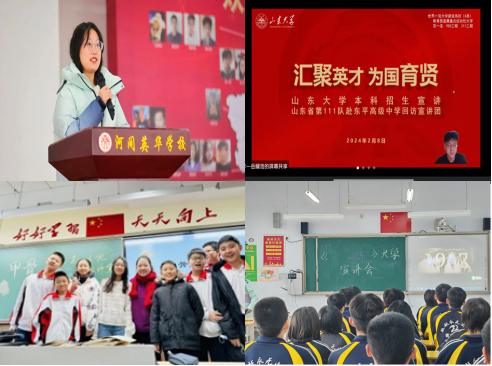 携手回访母校,讲好山大故事。积极响应校团委号召,学院优秀学子结合亲身经历和成长感悟,在寒假期间回访高中母校讲好山大故事、传递山大精神。“回音赴京”实践团队队员张瀛兮面向北京市第一七一中学开展线下宣讲,她围绕山大校史、专业特色、校园环境、学校文化等方面展开讲述,使同学们对学校优秀的办学理念有了更深一步的了解;“元梦之星”实践团队考虑到高三学子学习压力大且时间紧张,选择采用线上会议的宣讲形式。此次宣讲活动联合北京大学、清华大学等16所国内知名高校,共计200余名高三学生线上参加。其中,队员岳耀浩作为代表从历史沿革、办学规模、学风建设、学科特色等角度向学弟学妹详细介绍了山大的校情校史,展现了我校鲜明的办学特色。他还通过PPT宣讲和播放招生宣传片,充分展示了山大一校三地八校区的办学特色,并结合自身经历,解读学校本科招生培养政策,激发学弟学妹报考山东大学的热情。