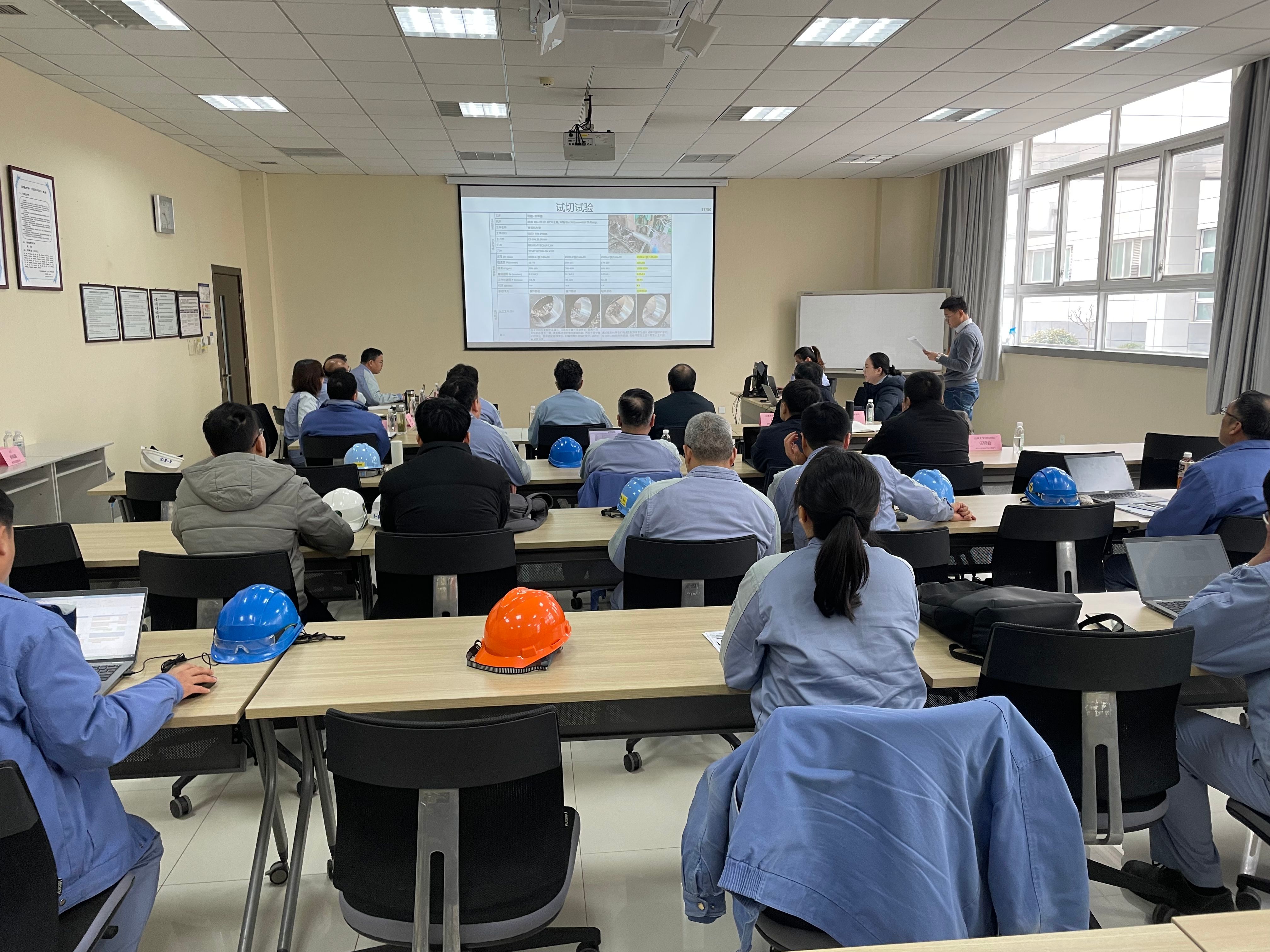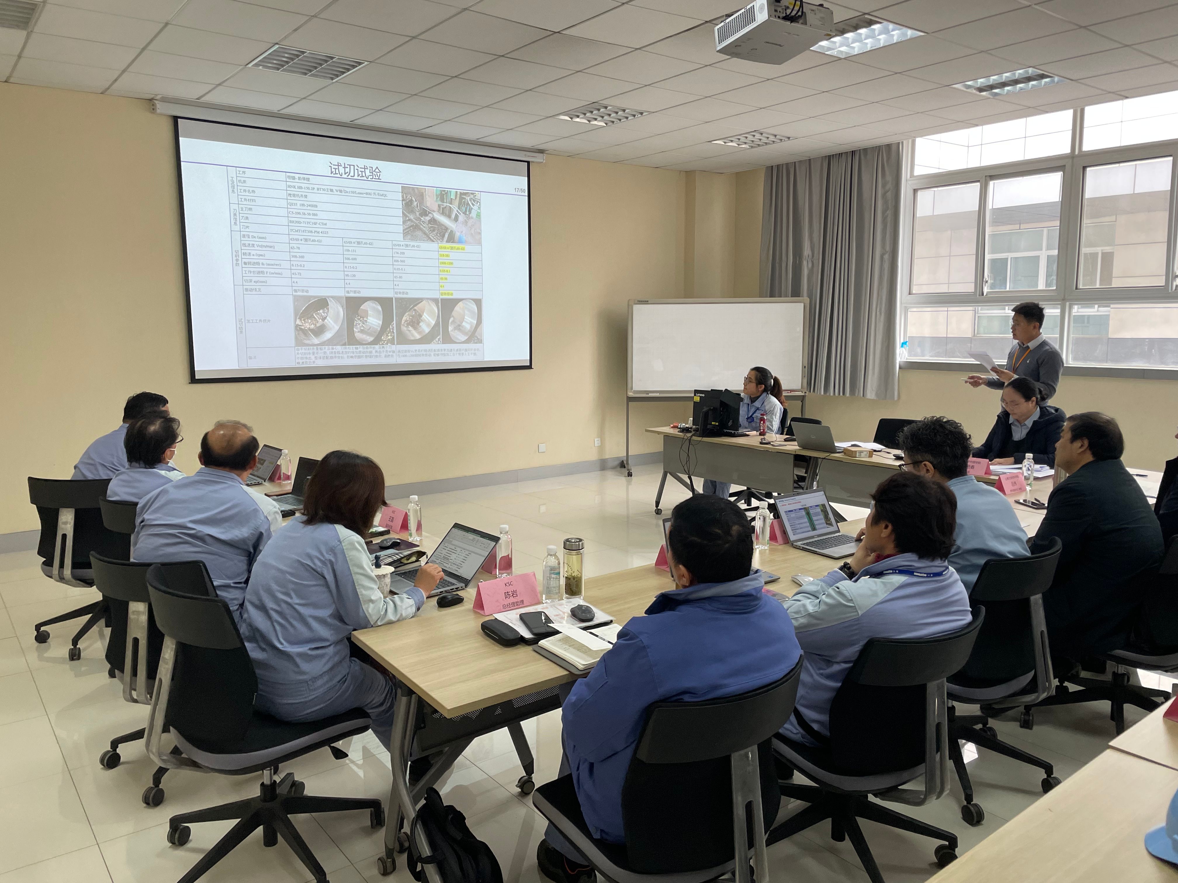 李辉副院长、韩静副科长分别介绍了山东大学和小松集团的参会人员。王兵教授、王桂龙教授、赵新海教授依次就“大切削量部品机械加工效率提高的研究”、“挖掘机用燃料油箱由金属材料变更为塑料材料的研究与应用”、“不锈钢冲压工艺的研究”做了结题报告。校企业方就报告内容进行了热烈的讨论,提出了很多建设性意见,对各位教授的研究给予了高度评价。