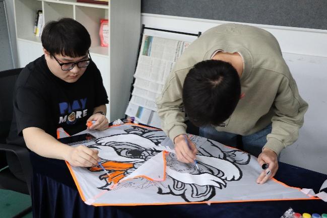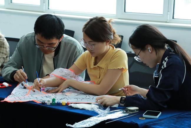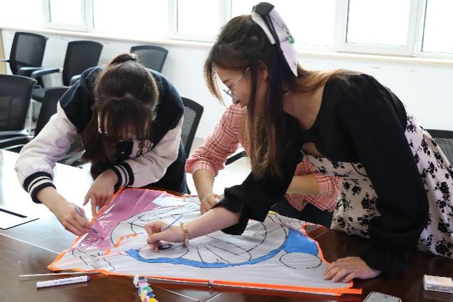 紧接着同学自行组队,抽取喜欢的风筝款式,开始构思风筝设计,用五彩缤纷的颜料装扮点缀出独一无二的风筝,一笔一划,都蕴含着同学们的独特情感和巧思。现场欢声笑语不断,同学们体验着动手的乐趣,绘出心中所想,放飞心中所爱。