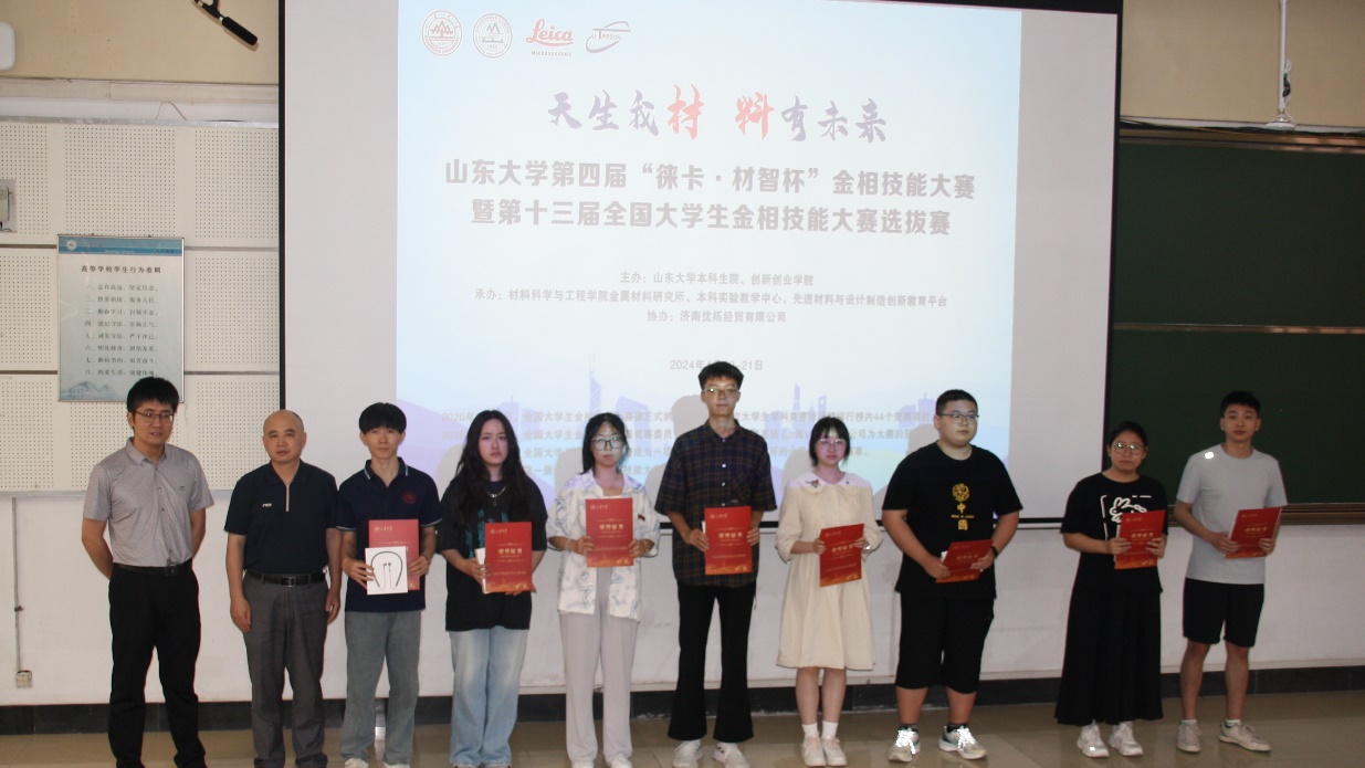 近日,山东大学第四届“徕卡·材智杯”金相技能大赛暨第十三届全国大学生金相技能大赛选拔赛在兴隆山校区顺利举行。本次大赛由本科生院、创新创业学院主办,材料科学与工程学院金属材料研究所、本科实验教学中心、先进材料与设计制造创新教育平台承办,济南优拓经贸有限公司协办。