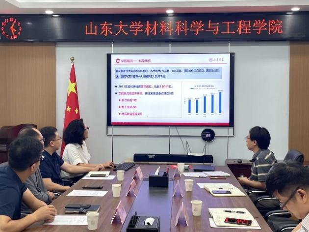 周传健代表学院对陈大鹏主任和朱新功部长的到来表示热烈欢迎。陈大鹏介绍了712所目前的发展概况以及研究内容,胡丽娜介绍了山东大学材料学院的学院概况和代表性研究成果。材料学院王峥、于美杰、王伟民、张爱敏等围绕各自研究领域、所在团队优势、发展现状以及项目合作和成果等多个方面进行了详细介绍。