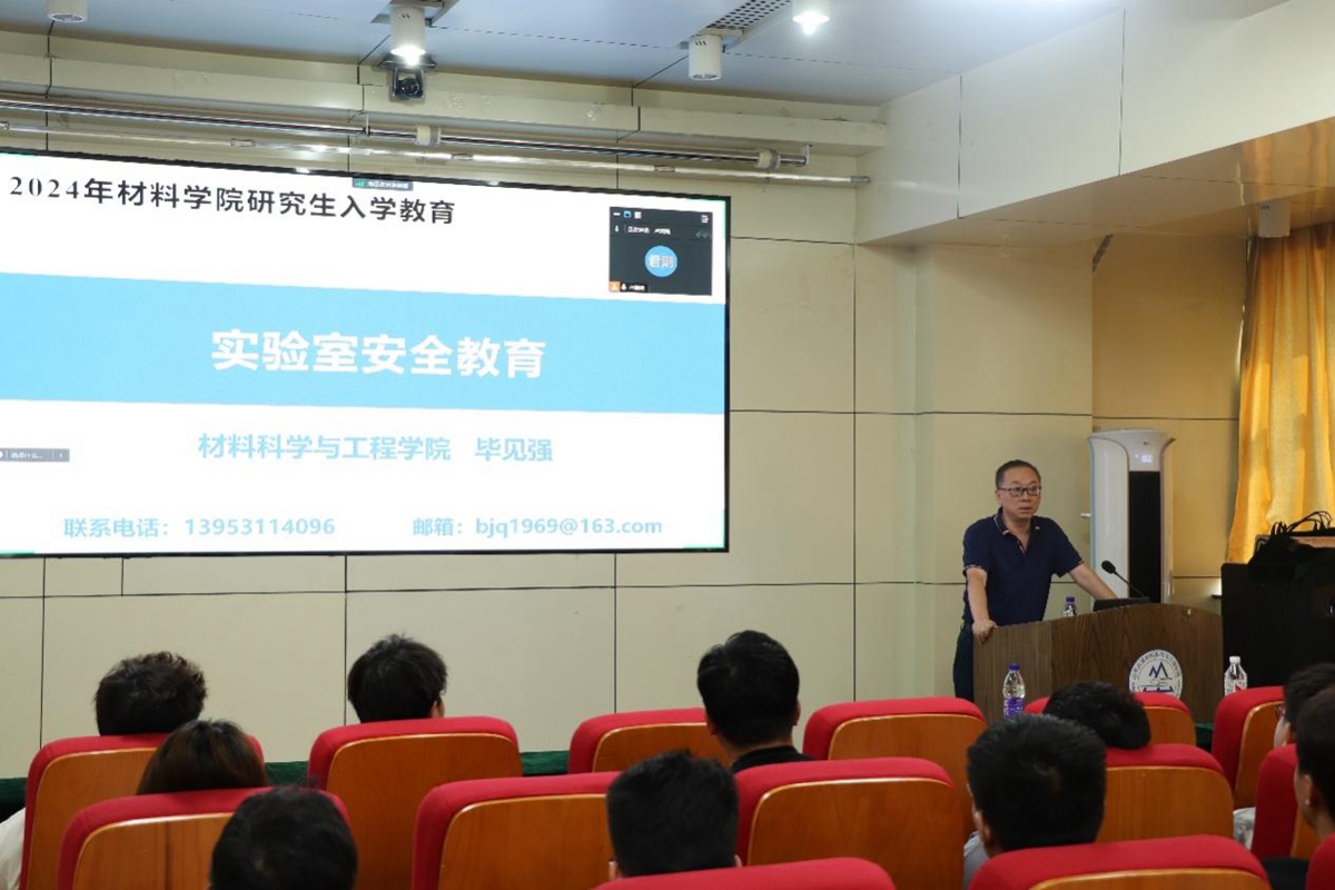 安全意识系生命,自觉遵守是保障。学生健康与安全是学生健康成长的前提,也是落实立德树人根本任务的第一保障,学校党委保卫部千佛山校区安保科罗勇为新生开展法纪安全教育,通过实例详细讲述校园生活需要注意的安全事项,提高同学们反诈骗、应对特殊情况的能力。材料学院副院长毕见强就实验室安全开展了讲座,带领同学们学习各类安全规章制度和安全应急预案,了解消防安全及预防、避险、自救、互救等知识和技能。研究生辅导员刘梦瑶在各班开展见面会暨行为规范教育,带领同学们学习《研究生手册》,突出强调宿舍安全、违纪处分等内容,增强同学们对校规校纪的理解,进一步增强同学们对校规校纪和校园生活的理解。学校心理中心曹丽丽老师开展身心健康教育讲座,进行适应性教育、师生沟通教育、舒缓心理压力和有效调节情绪等问题的讲解,引导新生提高心理健康素质,以积极健康的心态迎接未来研究生生活。学院党委副书记张强以导学关系为切入点,就研究生日常生活中面对的困难与挑战进行了剖析,并针对新时代下新生该成什么才、如何成才进行了个人规划指导。
