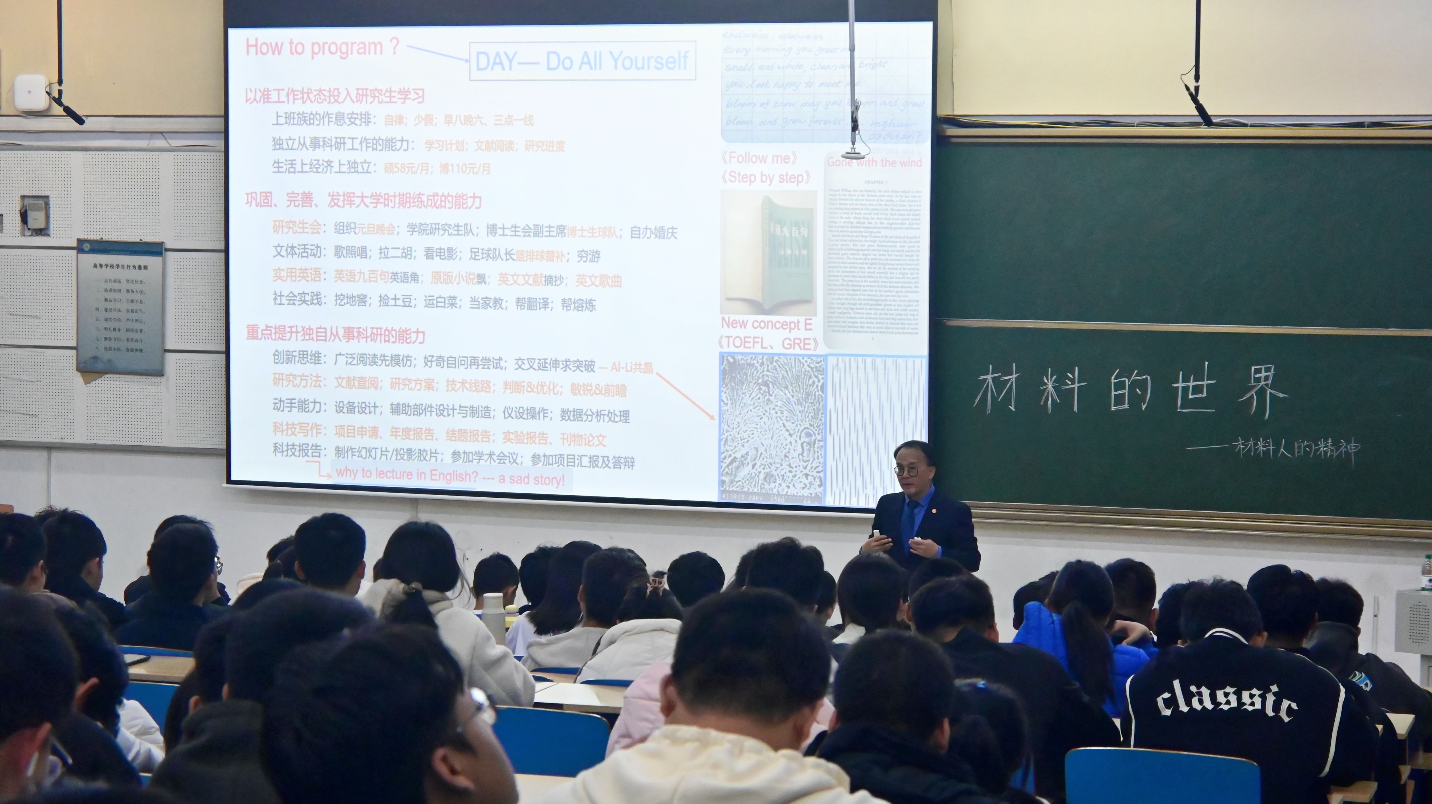 为大力帮助新生提升专业认知水平、不断增强学生的专业认同感,10月24日晚上,材料学院2024年“材料的世界”系列专题讲座第一期在兴隆山校区讲学堂105举办。本次讲座由学院二级教授、博士生导师闵光辉老师担任主讲,学生闵子轩主持,辅导员曹润竹和全体2024级本科生参与。