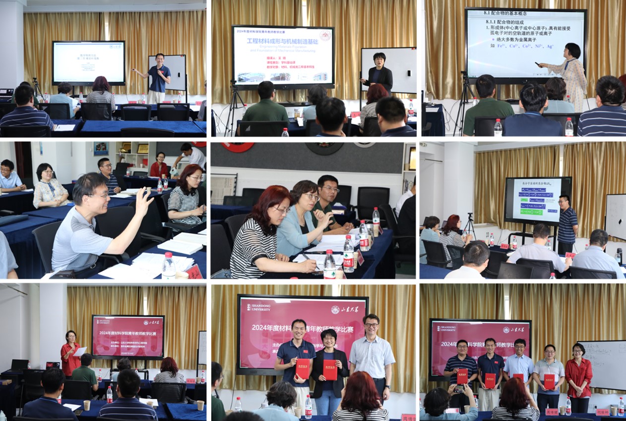 近日,山东大学组织了2024年度青年教师教学比赛,材料科学与工程学院青年教师积极参与,经过激烈角逐,王琦老师荣获校青年教师教学比赛一等奖,吴维康老师获三等奖,为材料学院再添荣誉。