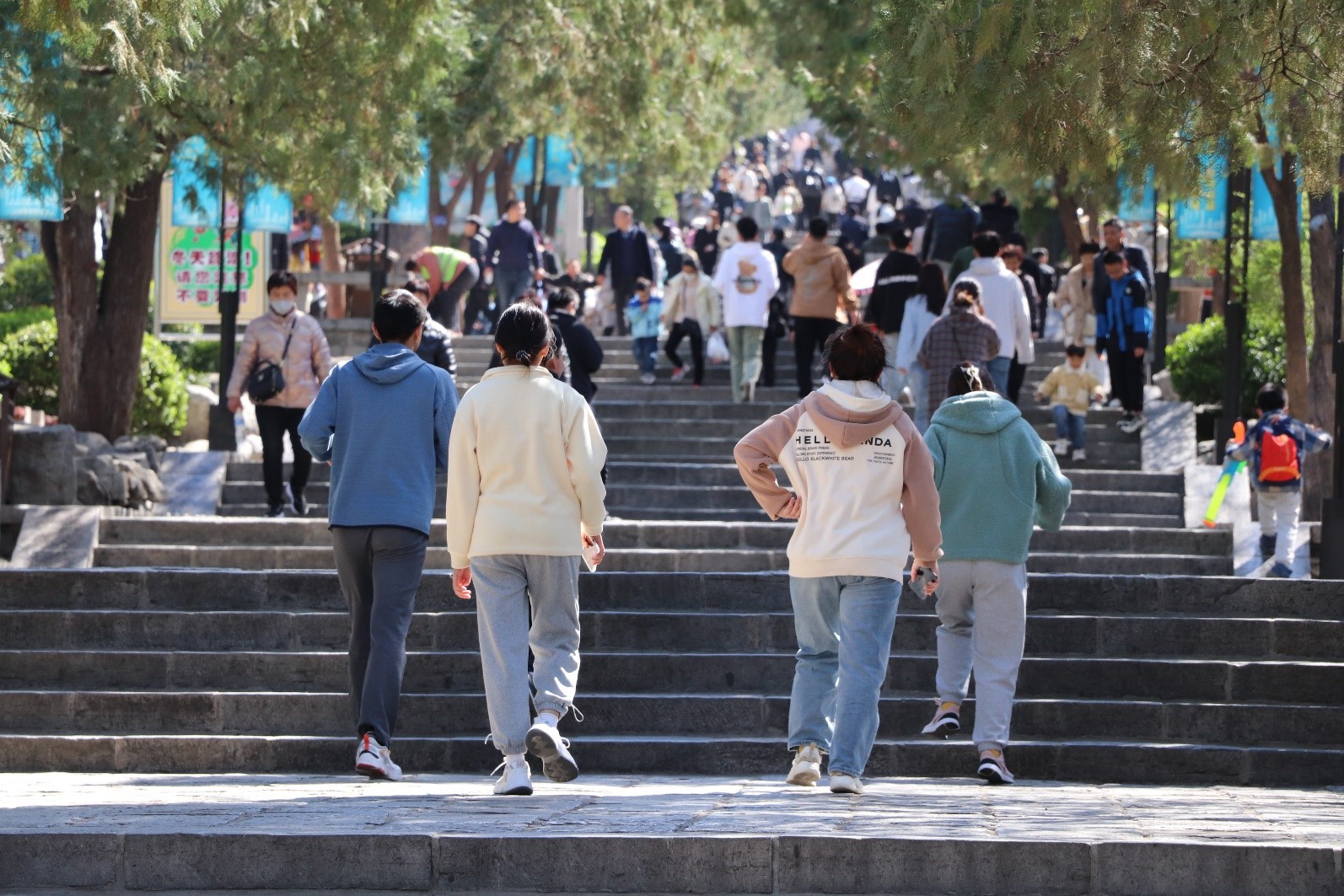 晴空万里,阳光明媚,尽管气温偏低,参赛选手们登山的情绪依旧高昂,热情不减。本着绿色环保的原则,全体成员由学校南门出发,经过十几分钟的步行,到达千佛山脚下。
