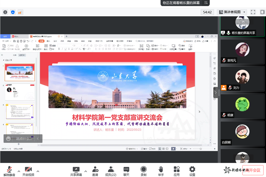 5月23日晚8时,材料科学与工程学院本科生党支部通过腾讯会议成功召开经验宣讲交流会,支部成员刘力主持,六位优秀本科生党员进行经验分享。