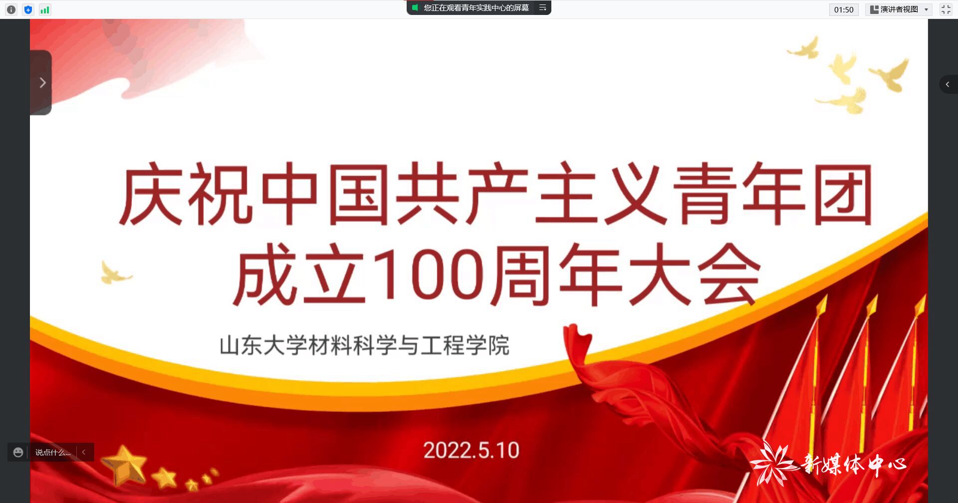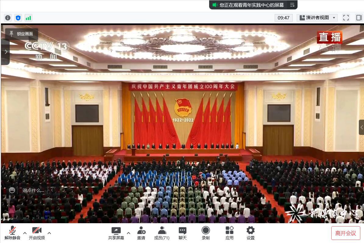 5月10日上午10时,材料科学与工程学院师生以线上线下结合的方式观看了庆祝中国共产主义青年团成立100周年大会。中共中央总书记、国家主席、中央军委主席习近平在会上发表了重要讲话,大家共同学习了本次讲话内容和精神。