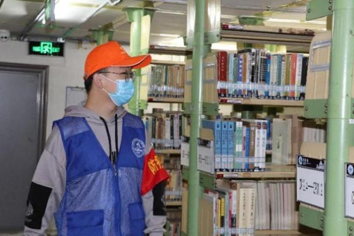 图书馆内疫情督查,共筑温暖校园环境。虽然当前疫情形势严峻,但并不能阻挡同学们的学习热情。为在保障同学们学习质量的同时做好防疫工作,学院研究生疫情防疫党员先锋岗开展图书馆疫情督查工作。工作期间,防疫督察员们依次巡查每一间自习室, 检查是否有未佩戴口罩或未按照规定就坐的同学,并及时提醒。另外,防疫督察员们对书库的安全隐患问题进行检查,为入馆同学提供座位预约、书籍查询等服务,营造温馨的校园学习氛围。