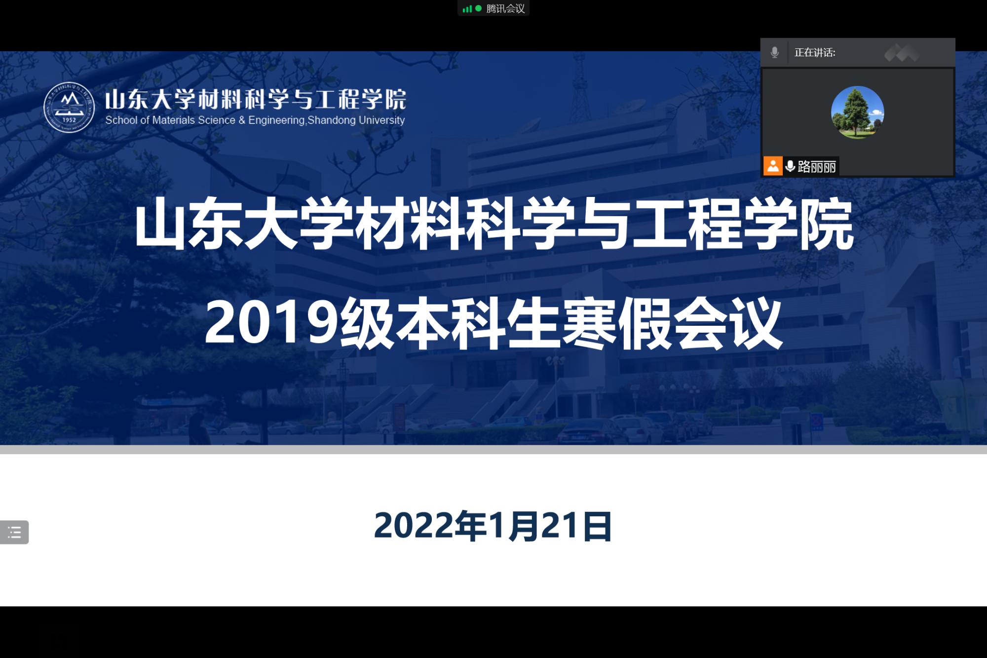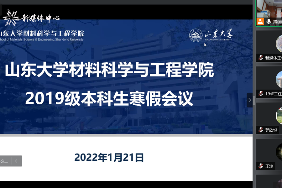 1月21日下午4时,材料科学与工程学院2019级本科生寒假线上会议成功召开,本次会议由学院团委书记路丽丽主持,与会人员包括2019级班主任以及全体同学。