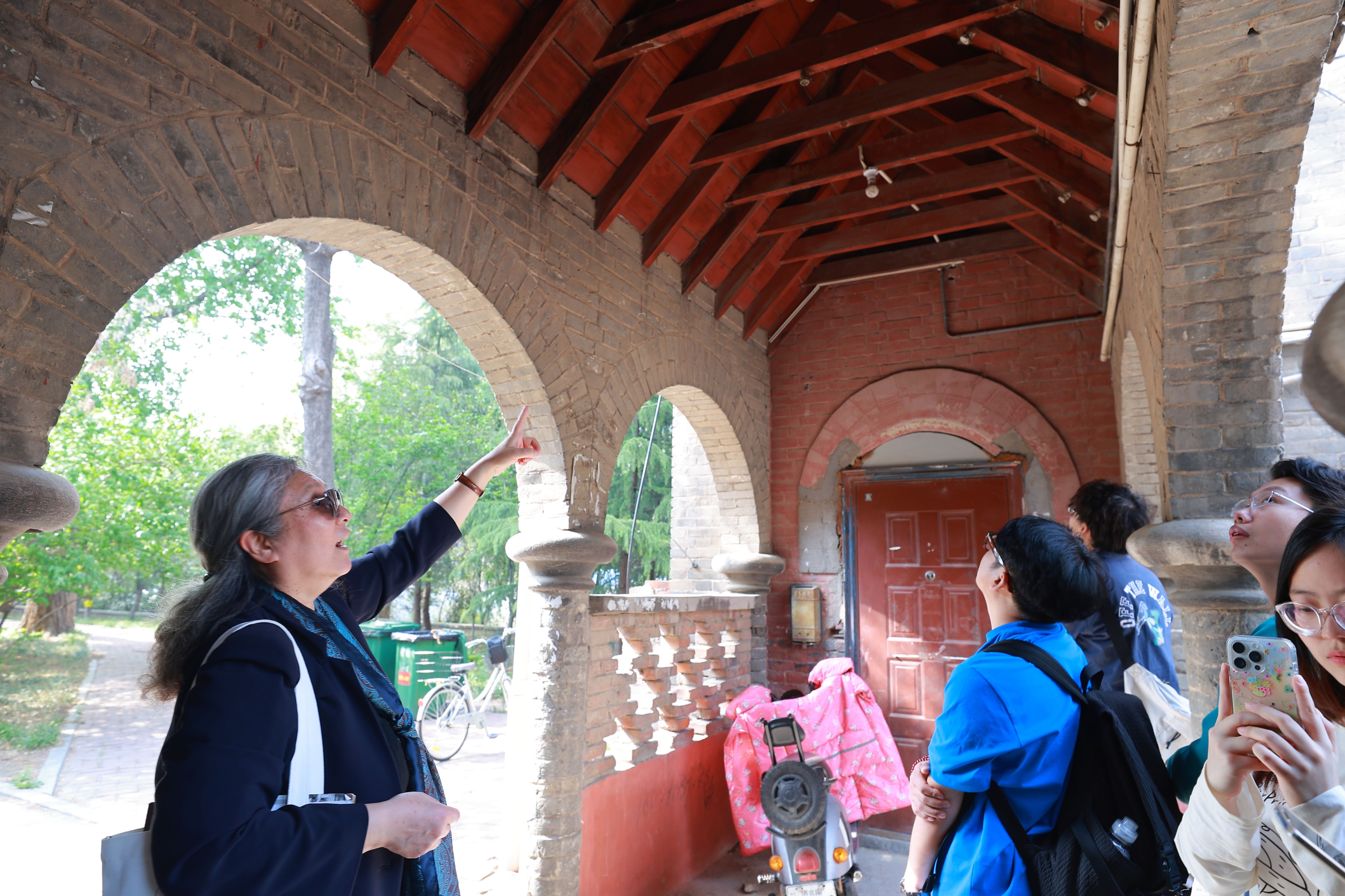 在趵突泉校区最具特色的“中西合璧”建筑群,她指着一座飞檐翘角与罗马柱并存的建筑说道:“这座楼宇的设计者巧妙地将中式屋顶的曲线美与西式立柱的几何感结合,既保留了中国传统建筑的庄重,又融入了西方现代建筑的实用性。这启示我们,科研创新也需兼容并蓄,既要扎根中国大地,又要放眼国际前沿。”