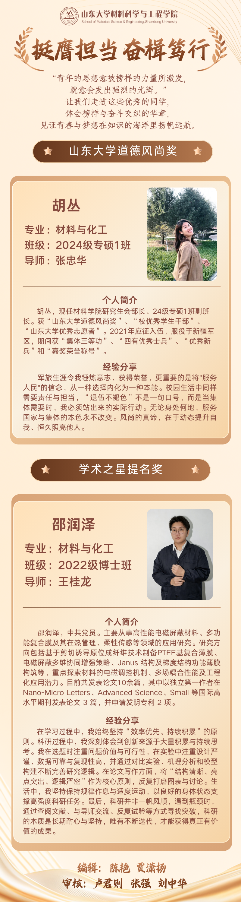 挺膺担当 奋楫笃行——研究生道德风尚奖&学术之星提名奖