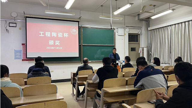 为表彰在2021-2022学年学习成绩突出的同学,11月3日,无机非金属材料研究所联合学院团委组织无机专业方向全体本科生在兴隆山校区隆重举行了“工程陶瓷杯”奖学金颁奖仪式。“工程陶瓷杯”是无机所联合学院团委设立的面向无机专业本科生的奖学金,分学习优秀奖和学习进步奖两类,分别奖励当年度学习优秀和学习成绩进步最大的学生,每年举办一届,已连续举办十六届。材料学院主管本科教学的副院长管延锦教授、主管本科生工作的党委副书记董兴、材料学院团委书记路丽丽、无机所党支部书记张景德教授、无机所所长张伟彬教授以及无机所本科生班主任韩桂芳研究员、王伟礼副教授参加本次颁奖仪式。