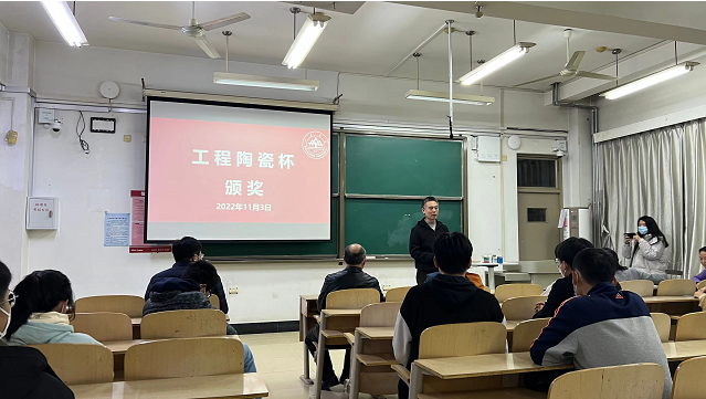 颁奖仪式开始,张景德教授谈到材料科学与工程是一门极为重要的学科,从民生制造到航天工程,无不涉及材料科学的发展。“工程陶瓷杯”是无机非金属材料研究所(工程陶瓷实验室)设立,旨在对过去一年中学习成绩优秀和学习成绩进步最大的部分无机非金属材料工程专业方向的同学进行奖励。近年来,在学院和无机非金属专业校友的大力支持下,无机非金属材料工程专业方向取得了极大地发展。“工程陶瓷杯”建立了专项奖励基金,增大了奖励力度。最后,张老师鼓励所有无机非方向的本科生,不要辜负学院和专业校友的希望,在材料科学方向上努力学习专业知识,为国家材料事业的发展贡献力量。