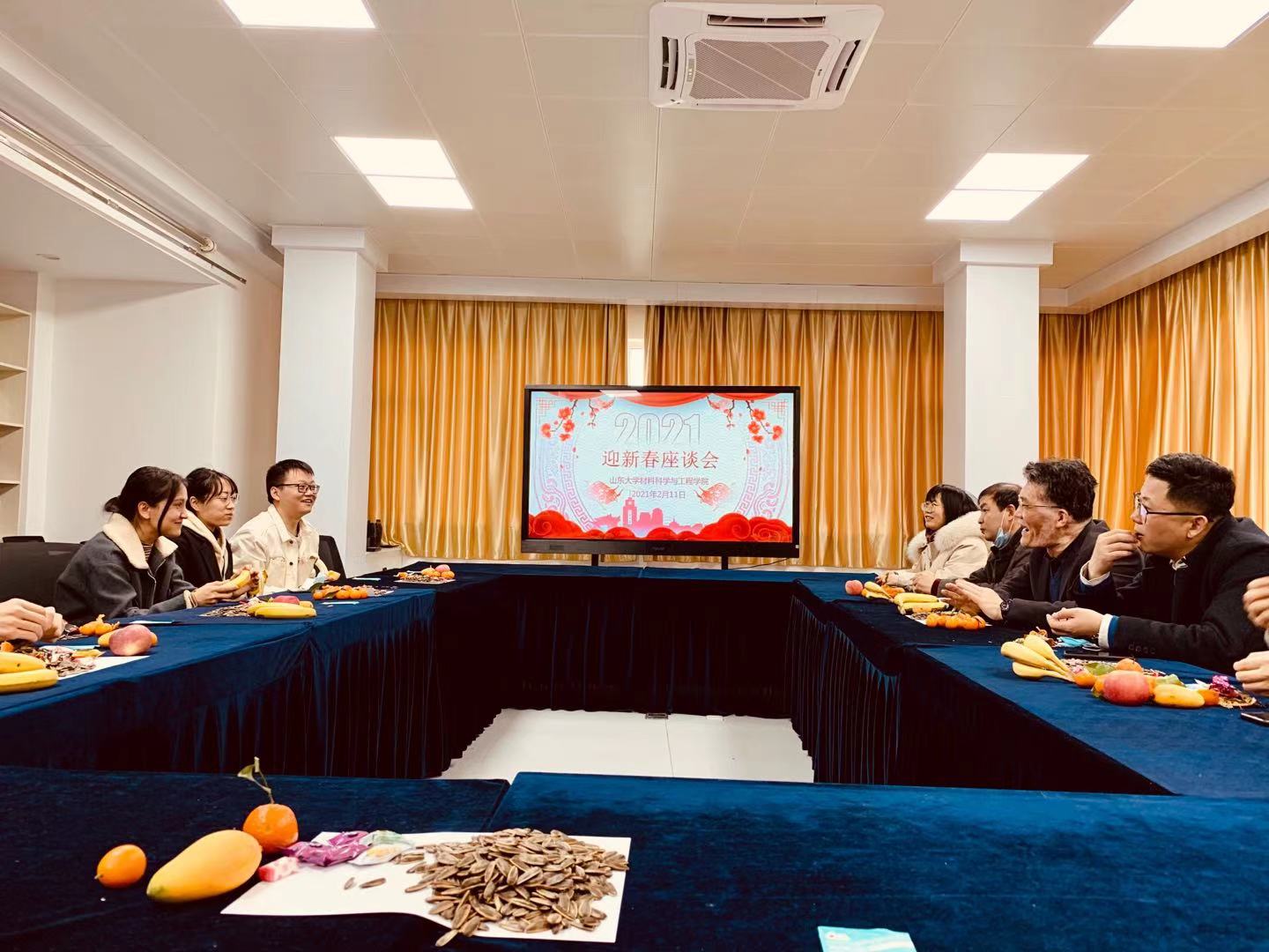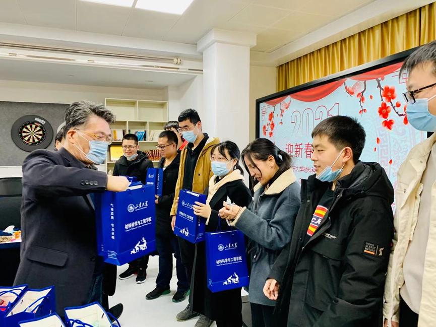 2月11日上午10点30分,材料科学与工程学院在千佛山校区主楼二楼职工之家会议室成功举办校学生迎新春座谈会,表达学院对留校学生的关心关爱,确保留校学生度过一个温暖、难忘的新春佳节。学院党委书记、院长赵国群、副院长李辉、党委副书记姜炳刚、研究生辅导员刘西华出席,并为留校学生送上新春的祝福。党委副书记姜炳刚主持本次座谈会。