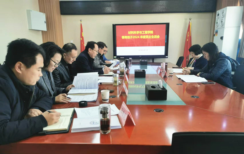 2月13日,材料学院召开领导班子2024年度民主生活会。学校第四指导组到会指导,会议由学院党委书记吕宇鹏主持,学院领导班子成员参加会议。