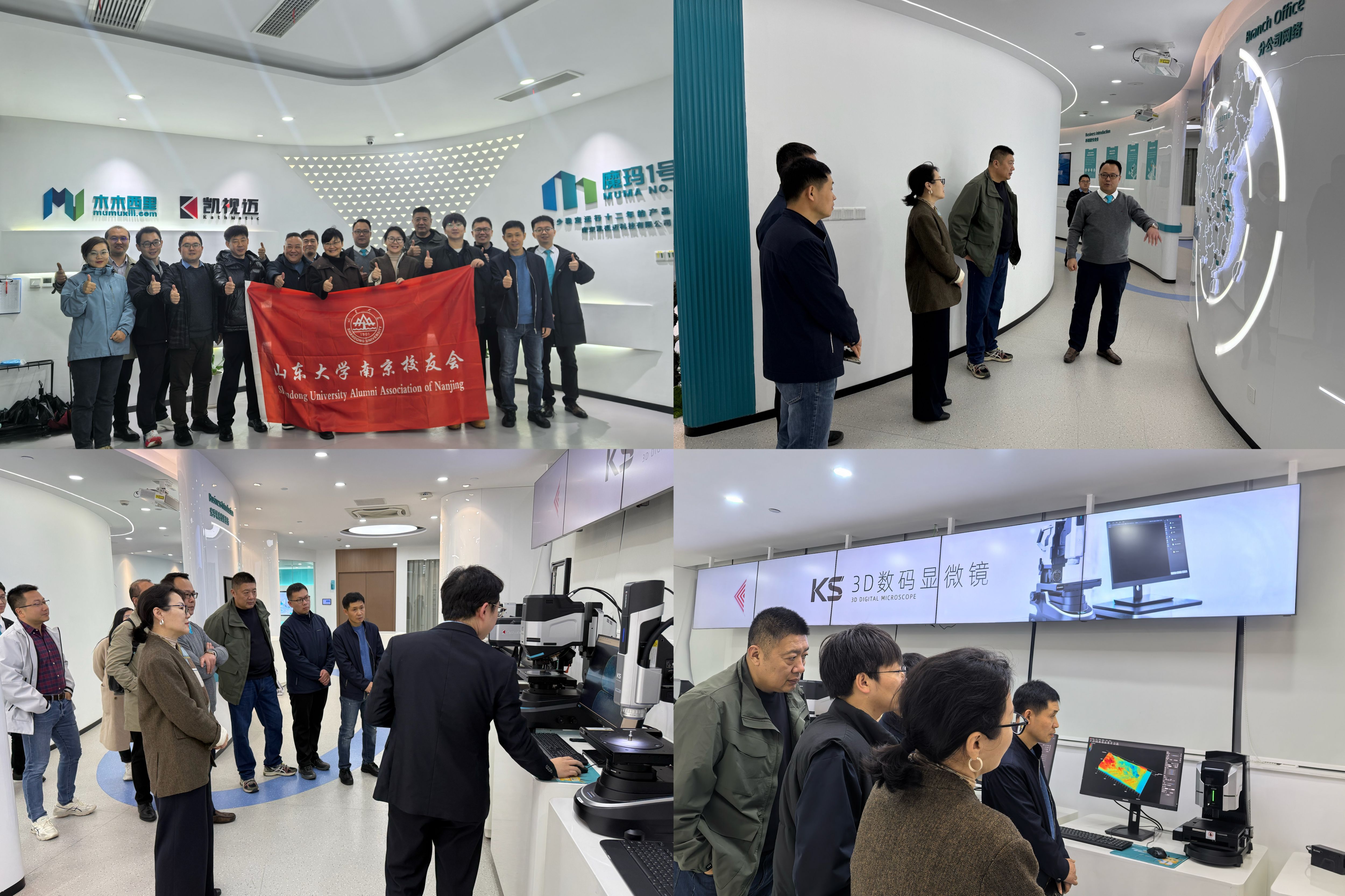 学院一行人还赴校友企业南京木木西里科技有限公司开展企业调研,2008级机械学院校友、木木西里公司董事长崔远驰主持接待。调研团认真听取木木西里公司的事业发展情况,并参观体验了3D超景深显微镜、激光共聚焦显微镜等各系列企业明星产品。胡丽娜对木木西里团队取得的优异成绩表示祝贺,希望公司在国产替代化的浪潮中强化核心技术研发,努力成长为中国仪器行业的领军企业。