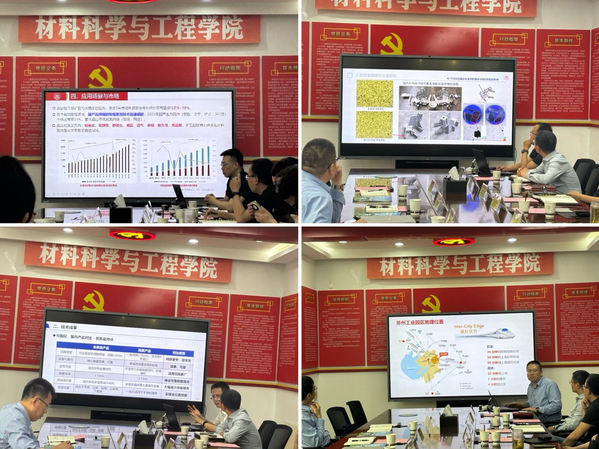 为推动材料学院科技成果转化,2025年5月14日,材料学院邀请苏州工业园、山东大学苏州研究院、山东省工业技术研究院等单位一行来学院开展项目路演等活动,会议围绕新材料领域科技成果路演、产学研合作及成果转化、人才培养等展开深入交流。会议由学院院长周传健主持,科学技术研究院和新一代半导体材料集成攻关大平台的相关工作负责同志和材料学院有关老师参加了会议。
