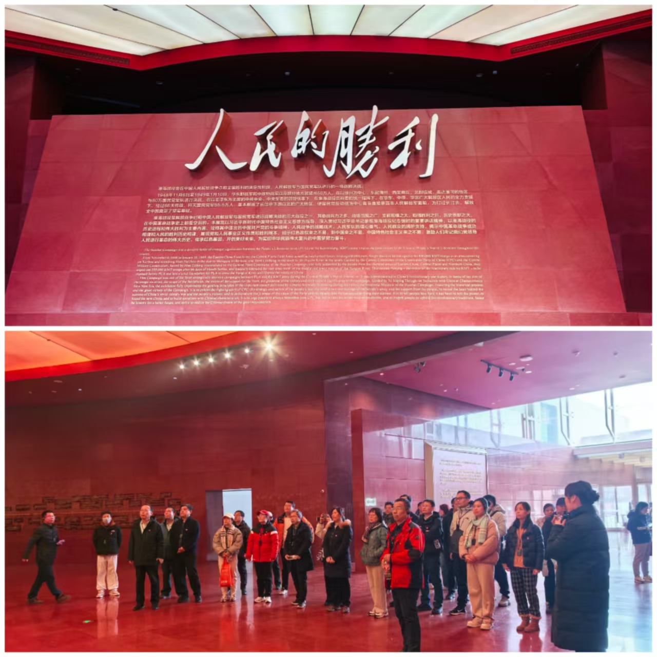 走进淮海战役纪念馆,“人民的胜利” 五个金字在序厅中熠熠生辉,瞬间将教师党员们带入那段烽火连天的岁月。