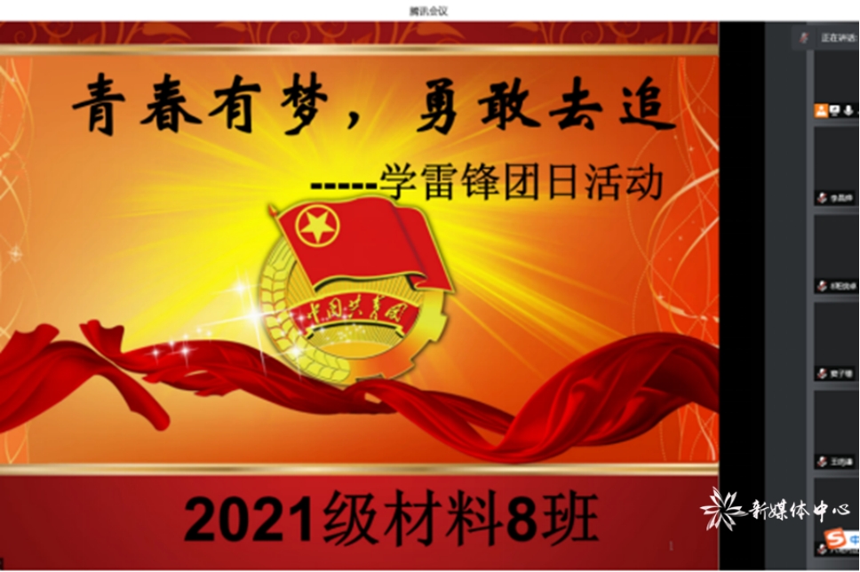 322日晚上9时,材料科学与工程学院2021级材料8班以腾讯会议顺利举办“青春有梦,勇敢去追”学雷锋线上团日活动。本次团会由团支书窦雨晴主持,班级全体同学参加。会上同学们对雷锋事迹进行了了解和学习观看了雷锋生前有关录像,收听了雷锋慷慨激昂的录音,以此来感受榜样的力量。在活动中,同学们互相学习与分享,更好地学习了雷锋精神。