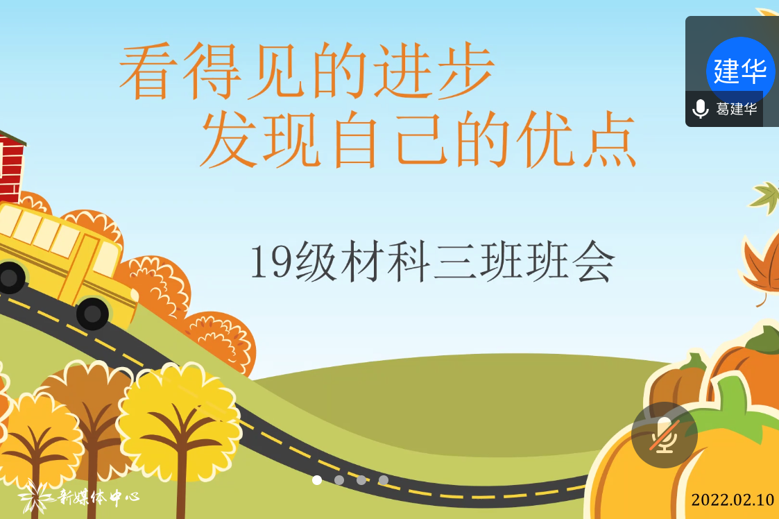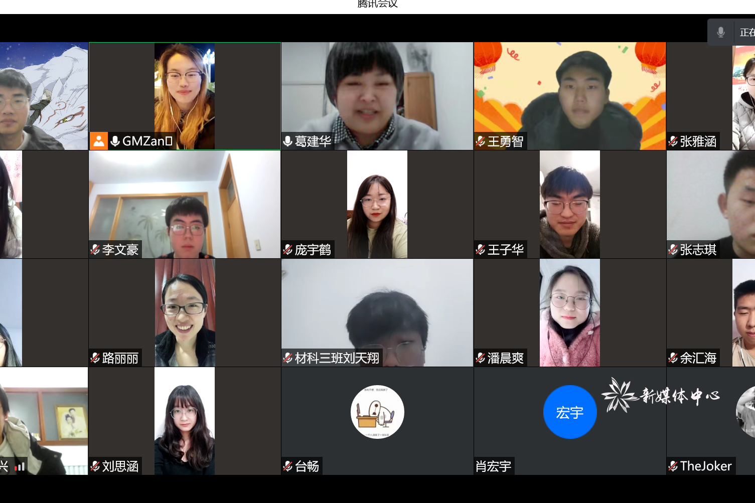 210号晚8时,材料科学与工程学院2019级材科3班利用腾讯会议平台成功举行了主题为“看得见的进步 发现自己的优点”的寒假线上班会。本次班会由班长高明珠主持,辅导员路丽丽、班主任葛建华以及材科3班同学共同参加了此次班会。