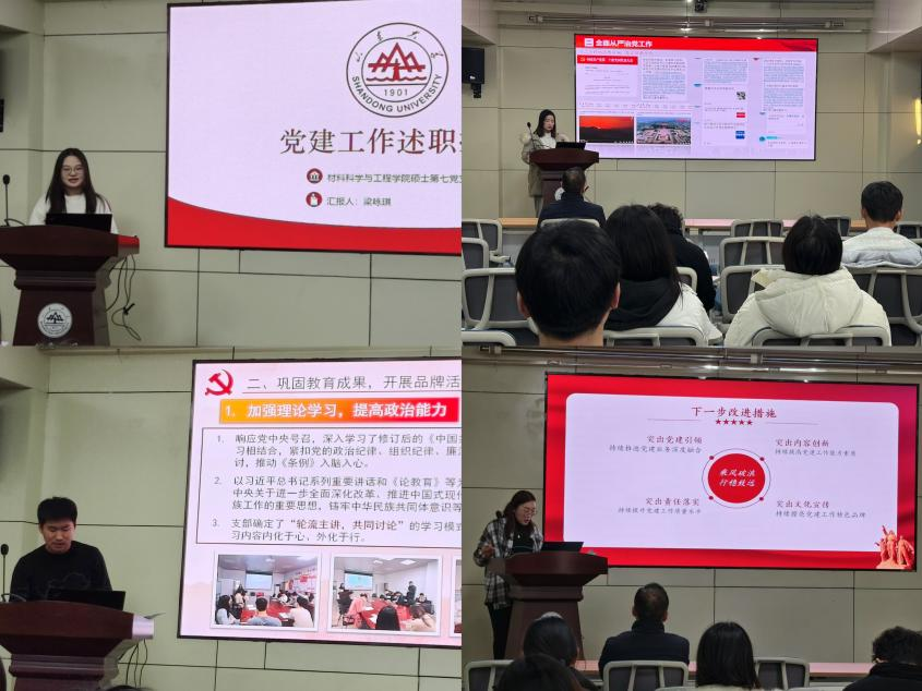 此次述职评议将现场述职与书面述职结合,本科生和研究生共计10位支部书记就2024年度抓基层党建工作进行现场汇报,深化政治理论学习、完善支部队伍建设、促进党建业务深度融合等多个维度详细阐述了本年度取得的成效,并诚恳剖析了支部当前存在的问题与不足深入探寻了问题根源,针对性地提出了下一步改进举措与会人员在交流分享的过程中认真倾听,互相学习,共同探讨促进支部发展的新路径、新方法,并通过民主评议的方式对支部工作打分评价。