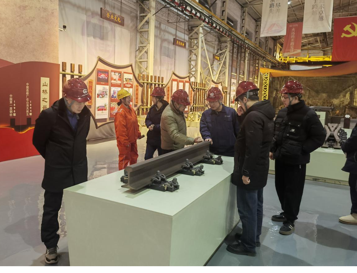 在中铁山桥集团有限公司,公司党委副书记王伟、人力资源部部长魏笑楠及有关部门负责人与学院教师展开座谈交流,初步交流了双方在人才培养、科研合作、党建共建等方面开展合作的意向。老师们参观了“红桥”党建馆、“红桥”文化广场,深入学习了中共一大的山东代表王尽美在山海关领导工人罢工的革命历程,以及中铁山桥一百三十年的辉煌发展史。实地调研了辙叉车间、道岔车间等一线生产车间,了解了中国钢桥建设和轨道交通设备产品行业发展现状与中铁山桥近几年的重大项目进展。