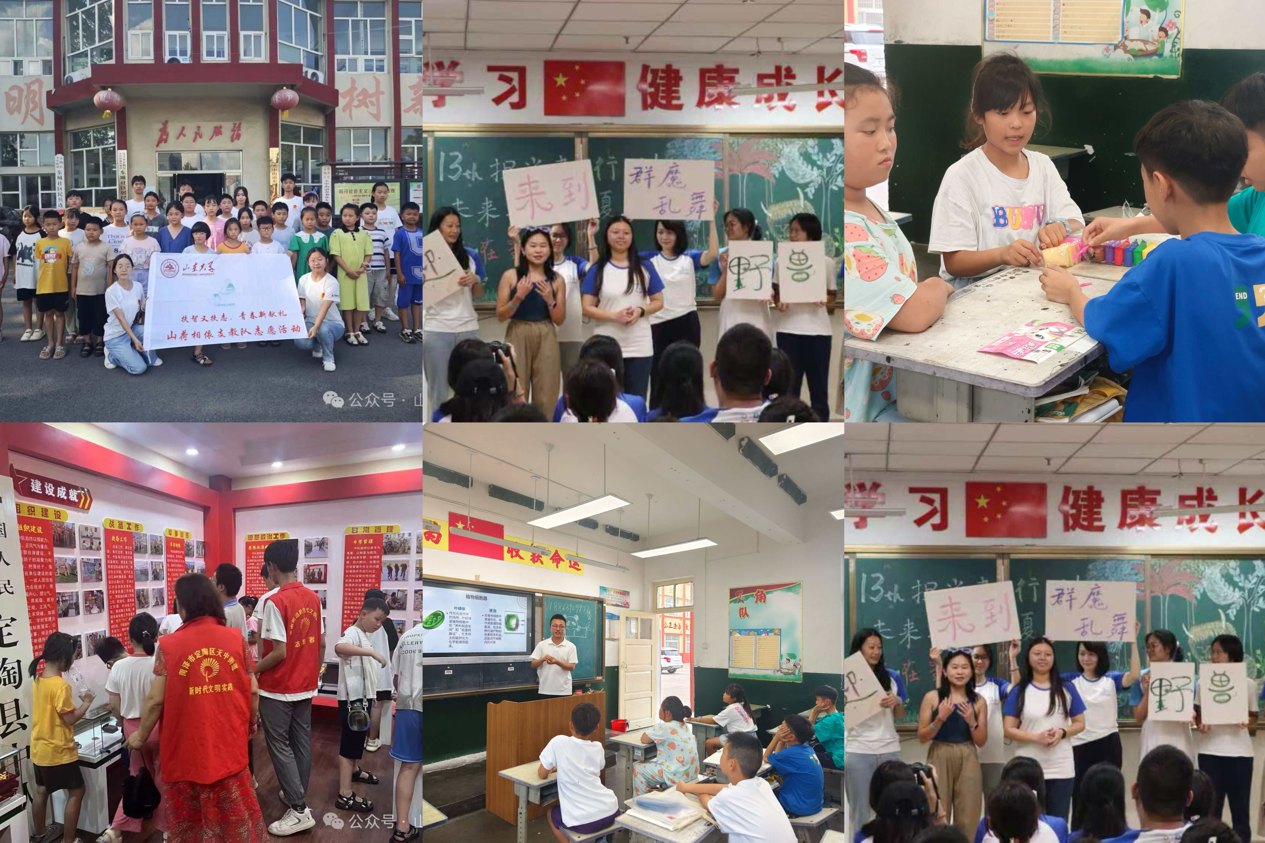 相约走进社区,助力乡村教育“微微远山”支教团前往济宁市微山县,为山区里的孩子们奉献了一场为期一周的暑期支教课程,助力山区孩子们的学业进步和身心健康成长;时青社“童善之星”支教队也赶赴济南长清区孝里街道童善儿童关爱中心,孩子们进行多方面的科普启蒙教育,激发他们探索科学的兴趣。各实践小队在支教前期准备过程中,制定了详细的活动方案和日程安排。在活动开展过程中设计了许多“互动”模块,增加课程的趣味性,增强了小朋友们的体验感。实践队成员在丰富了学生假期生活的同时,为乡村教育发展贡献了自己的青春力量。