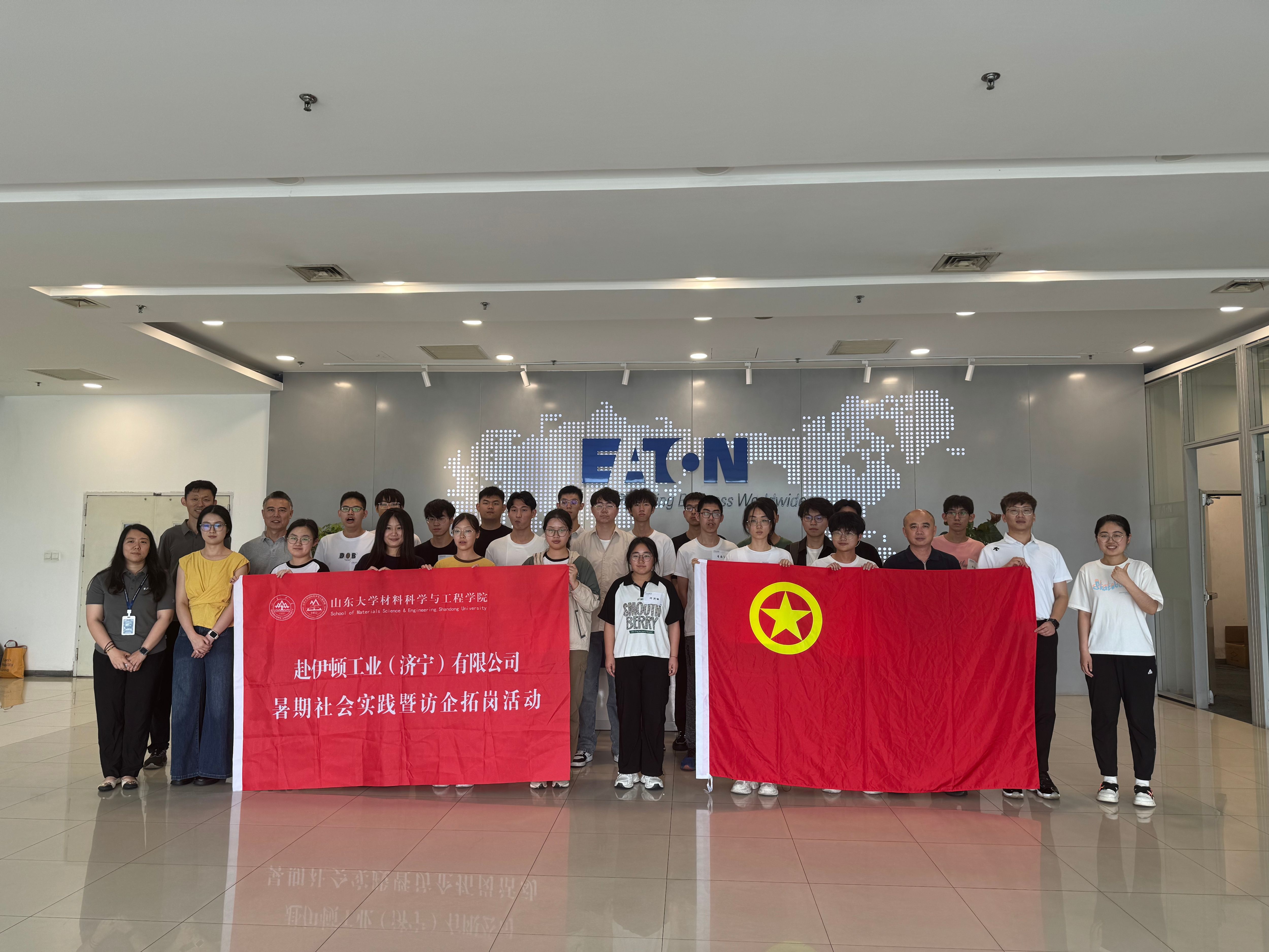 为全面深化校地企青年培养合作、不断加强学生就业价值引领、大力引导青年在实践中增长知识才干,7月5日,材料学院赴伊顿工业(济宁)有限公司开展暑期社会实践暨访企拓岗活动,学院党委副书记董兴、教授管延锦、团委负责人张贵梁和30余名本科生参与本次活动。
