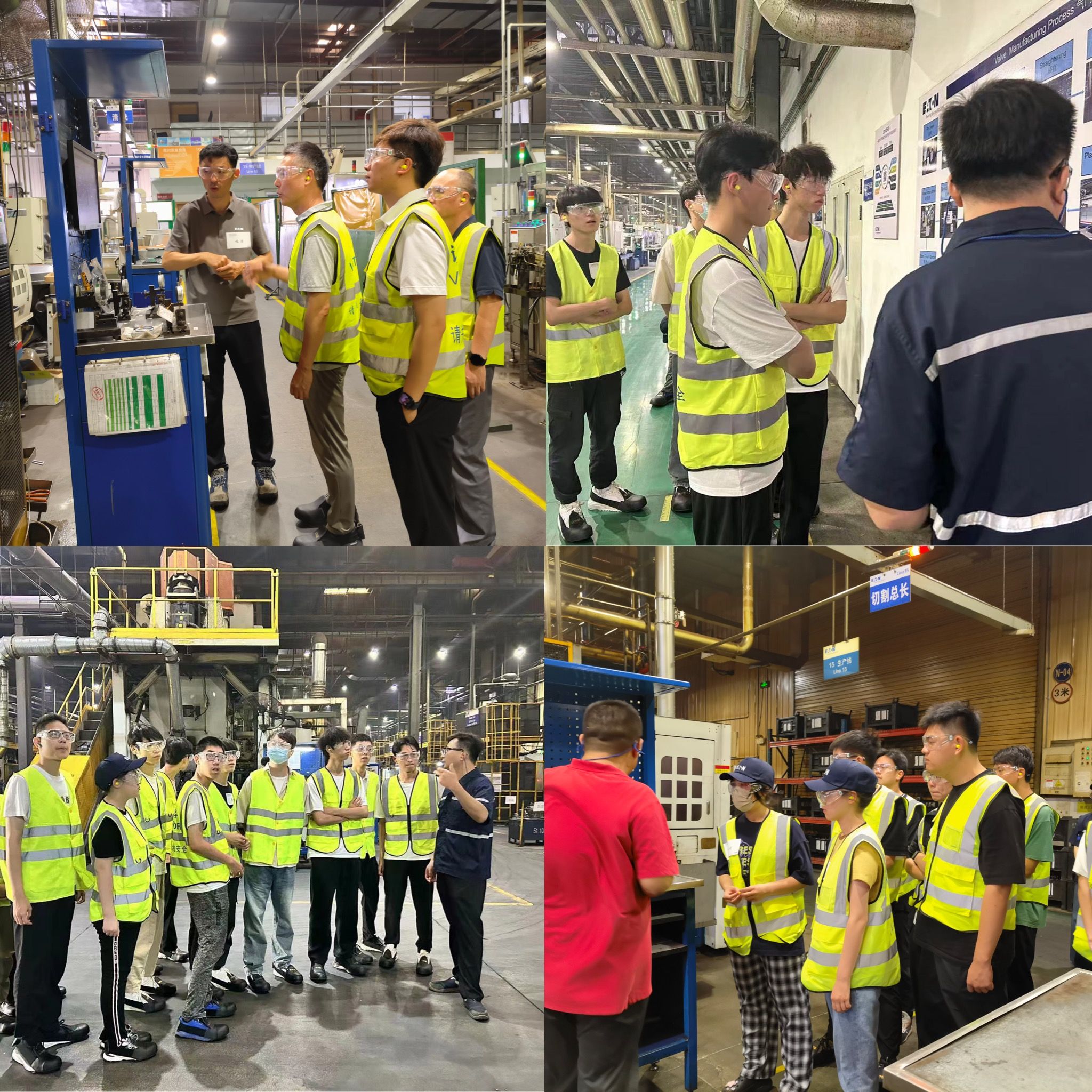 随后,师生们分组来到企业生产车间进行实地参观学习,了解伊顿公司主营产品的生产工艺流程,工作人员贴心为大家提供了防护服、护目镜、耳塞、鞋套等安全保障物品,并协助所有来访人员穿戴齐全。在工作人员的引领下,大家了解到各个车间的生产职能和发动机配套产品的整套生产流程,师生们也在领略现代化、自动化工业生产过程的同时深切感受到身处各个岗位员工的职业和敬业精神。