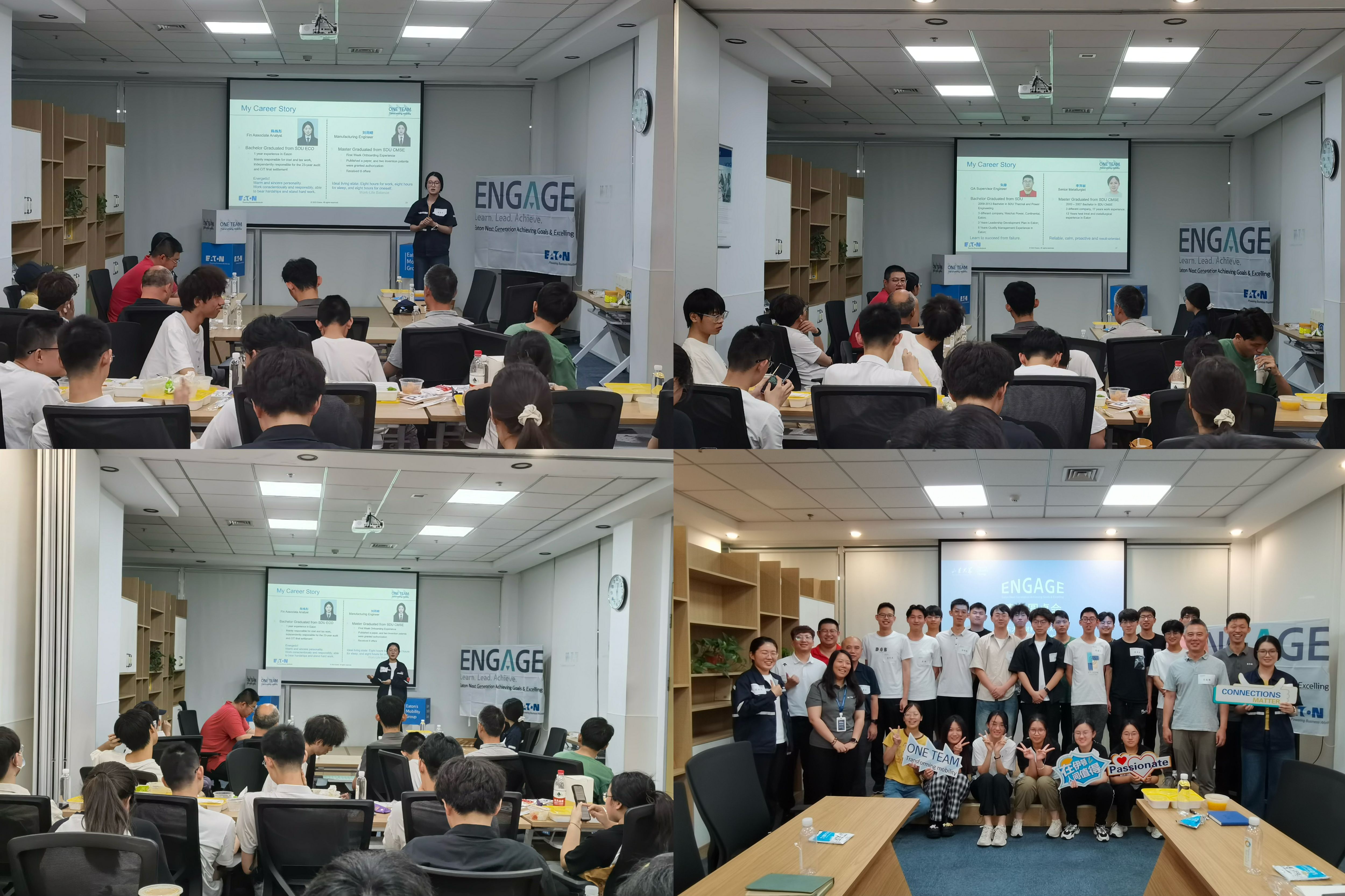 接下来,师生一行人同伊顿公司的山大校友开展了校企座谈会活动。在伊顿公司就职的四位山大校友分别向大家讲述了自己在伊顿的成长故事,激励大家要“惜取少年时”,珍惜大学的宝贵时光,学习好专业理论知识和提升自身综合素质,充分汲取成长成才所需要的养分。学弟学妹在聆听完优秀学长学姐的发言后踊跃提问,虚心求教,校友以及公司工作人员们一一耐心解答,积极回应。通过座谈会,学生们对伊顿公司有了更加深入的了解,也对自己未来的职业生涯规划有了更清晰的认知。