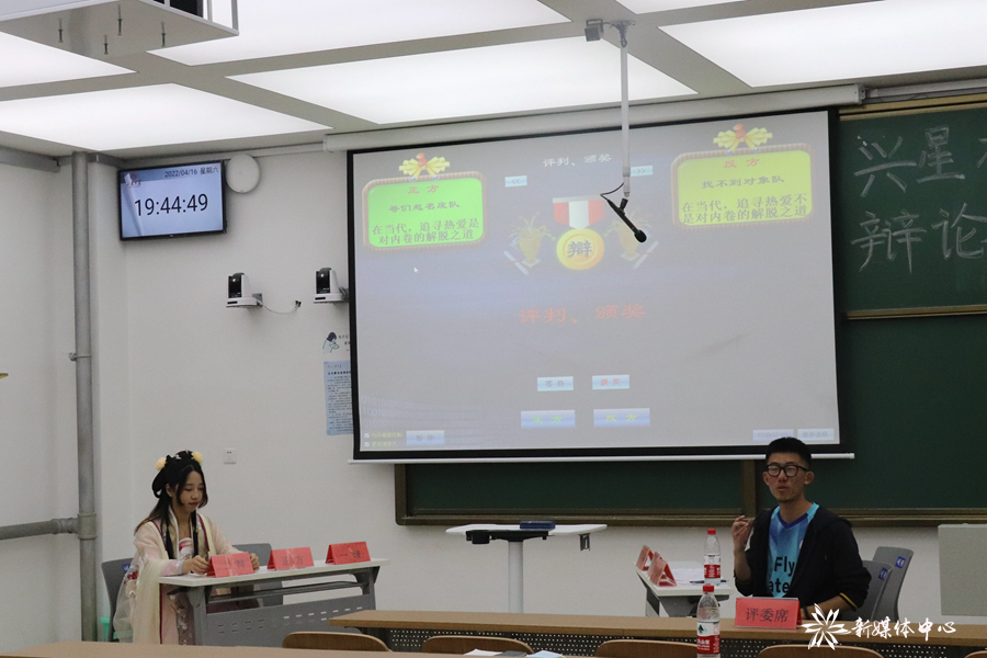 4月16日晚上7时,由材料科学与工程学院团委举办的“兴星杯”辩论赛总决赛在兴隆山校区如期举行,材料科学与工程学院和电气工程学院进角逐冠军,并邀请材料学院袁翰铮、电气学院丁姚担任评委,比赛以“在当代,追寻热爱是不是对内卷的解脱之道”作为辩题,正方为材料科学与工程学院,他们持“在当代,追寻热爱是对内卷的解脱之道”的观点,反方为电气工程学院,他们持“在当代,追寻热爱不是对内卷的解脱之道”的观点。