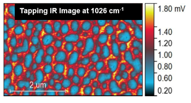 纳米红外光谱系统基于原子力显微镜,采用光热诱导共振增强分子光谱功能,可以有效进行纳米尺度材料表面物性和化学分析。该仪器可提供全功能的AFM成像模式:轻敲、相位成像、接触、侧向力、力调制、力校准模式、表面电势、静电力、纳米力学和磁力模式。其纳米红外光谱系统可实现快速扫描功能,光谱采集速度<3s/光谱,红外光谱的空间分辨率突破了光学衍射极限,提高至10纳米级别。